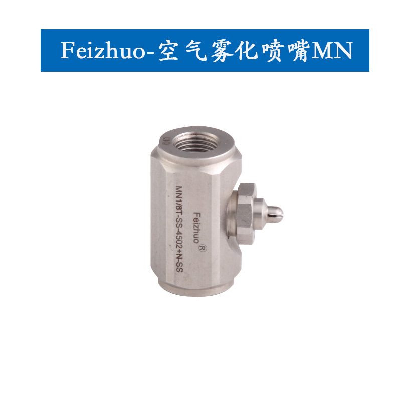 MN系列空氣霧化噴嘴特殊的內(nèi)部結(jié)構(gòu)設(shè)計(jì)能使液體和氣體均勻混合,產(chǎn)生微細(xì)液滴尺寸的噴霧或粗液滴噴霧。通常,通過(guò)增加氣體壓力或降低液體壓力可得到更加微細(xì)(30微米左右)的液滴噴霧,從而導(dǎo)致效高的氣體流率與液體率比。